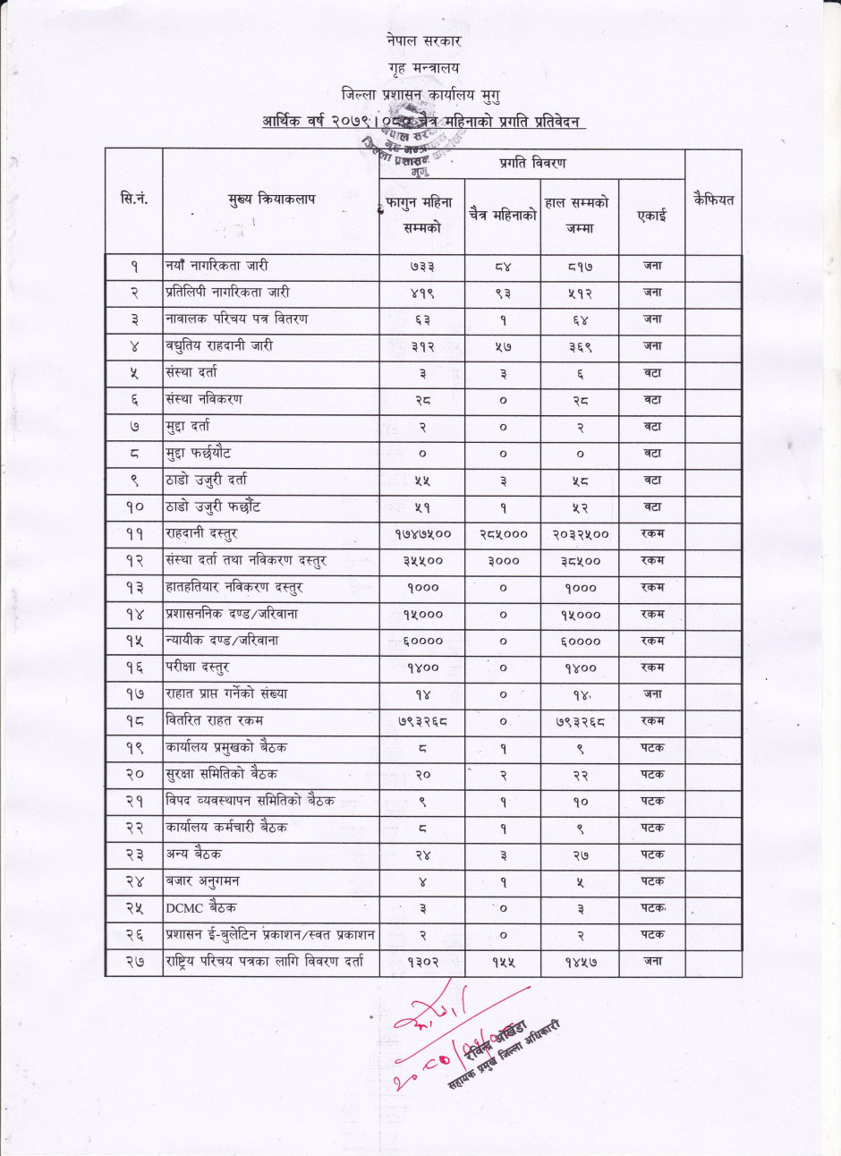 आ.व.२०७९।८० चैत्र महिनाको मासिम प्रगति विवरण