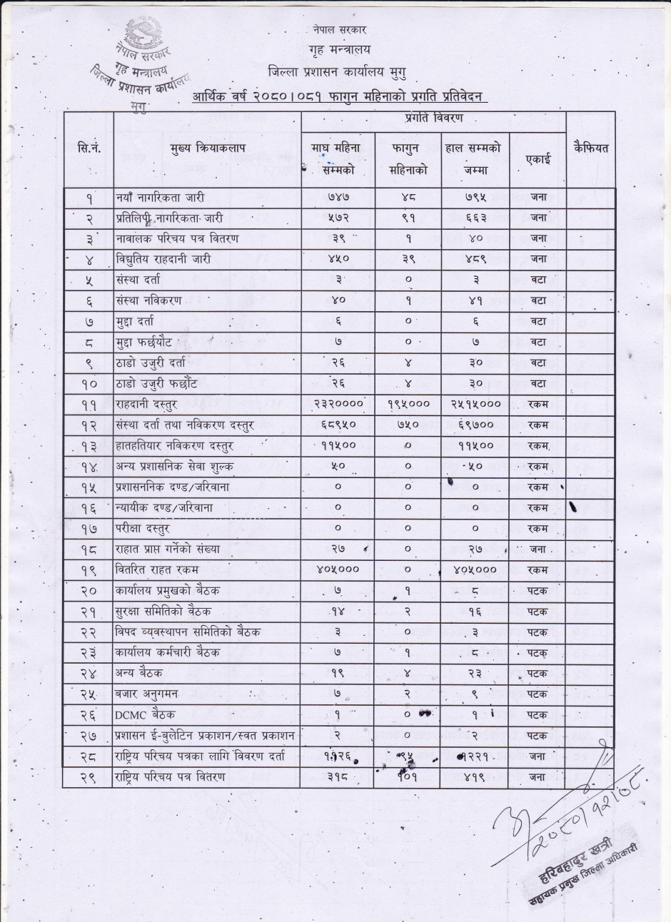 आ.व. २०८०।०८१ फागुन महिनाको प्रगति विवरण