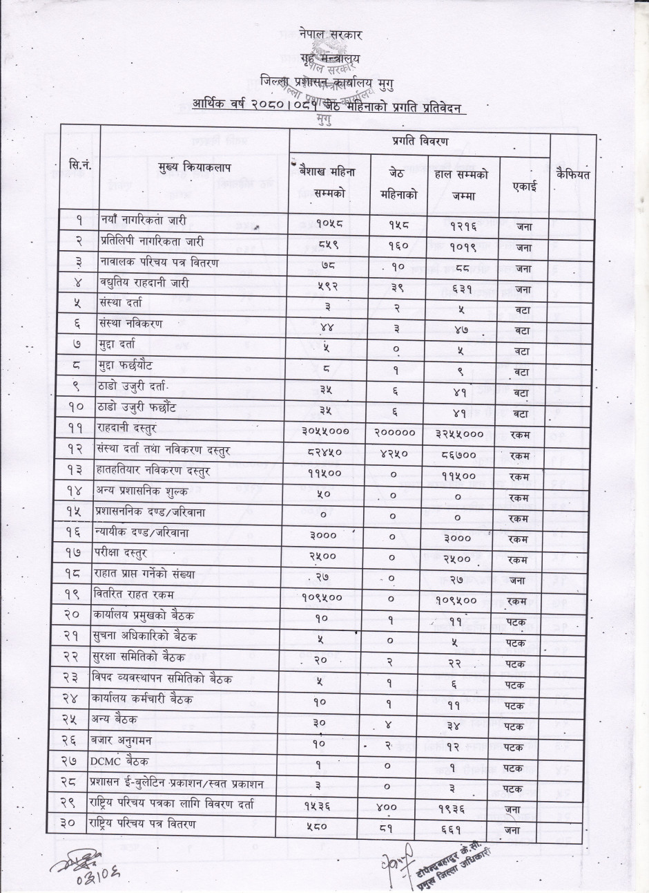 २०८१ जेठ महिनाको प्रगति प्रतिवेदन ।